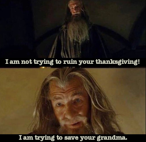In about a week we are going to see the merger of COVID-19 misinformation and the ever-popular “War on Christmas” conspiracy which annually reminds us that dark forces are at work in the world to destroy my favorite holiday and everything it stands for. But until then, Thanksgiving is the target apparent of the powers that be.