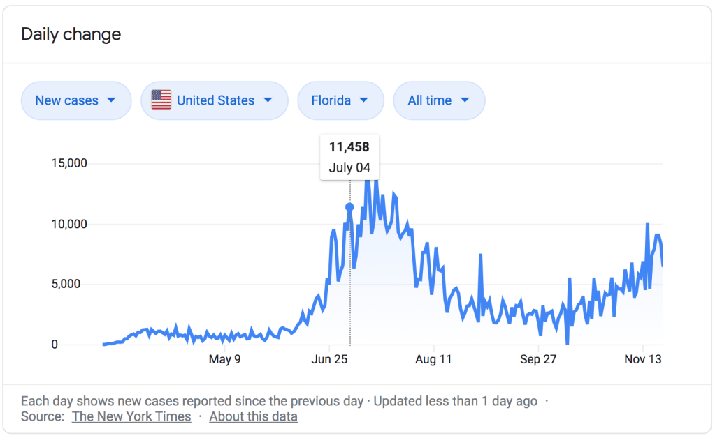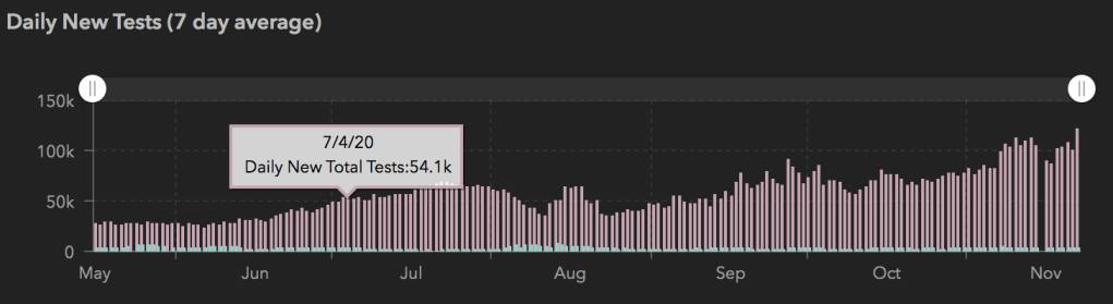 If we are going to discuss the characteristics of Thanksgiving, it would help to compare it to another widely celebrated holiday we’ve experienced during COVID-19, the 4th of July. As a reminder, here is a look at the numbers.