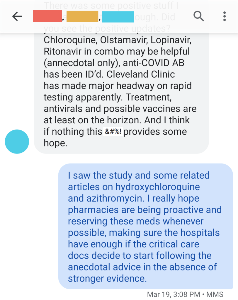 In many ways I think Dr. Bartlett is actually going about this fairly well. He seems to imply that he is using the medication, which does have a theoretical mechanism of action after all, only on those who really do have COVID-19. He does not seem to be doing television interviews or talking with newspapers in order to make a name for himself and attract clientele from all over the state to help his business, as seems to be the case with some other doctors prescribing unproven treatments, but in order to ‘get the word out there’ to other doctors (as one of those other doctors, I deeply appreciate this impulse), although I am not sure why he has not utilized any of the many avenues on social media that many of use are using to get physician specific feedback and share ideas; maybe he is and we just aren’t part of the same COVID-19 doctor groups. Most importantly, he states that he has written and is submitting a paper for publication, which will provide both more details about his patients, their demographics, commodities, and clinical presentations, and allow for peer review and a higher degree of detail and scrutiny than we could possibly get through a TV interview.