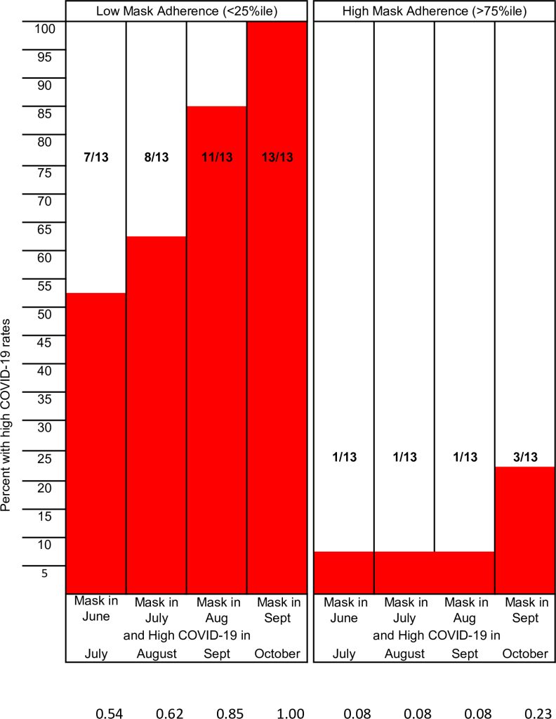 It’s a challenging question to study because demographics and climates vary, and surges are affected by not just state residents but also visitors and tourists and the people living in surrounding states. But there are studies that have done the work of comparing the rate of COVID-19 cases to adherence to masking at the state and local levels. The methodologies have been different, but each has shown what we already knew from comparisons between nations with varying mask policies early in the pandemic; in regions where mask adherence is high, COVID-19 cases are lower. And in regions that adopt mask mandates or similar policies, COVID-19 cases begin to fall.