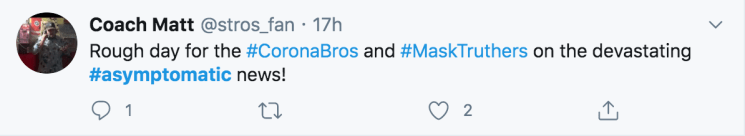 One more thing I remember specifically, because it was so shocking to me at the time. He goes on to talk about the way that the mortality data is being ‘manipulated’, even saying that a deceased patient with COPD (Chronic Obstructive Pulmonary Disease) who contracted COVID-19 has not actually died of COVID-19, but from 25 years of smoking… As though the medical vulnerabilities that predispose a patient to becoming a victim of this horrible virus and the pathology caused by the virus itself are mutually exclusive. As though tens of thousands of COPD patients who have been smoking for decades were suddenly going to go into respiratory distress in April 2020, apart form any exacerbating factors, and their happening to have the virus that is also killing people with heart disease, diabetes, compromised immune systems, and even the young and healthy is just some weird coincidence.